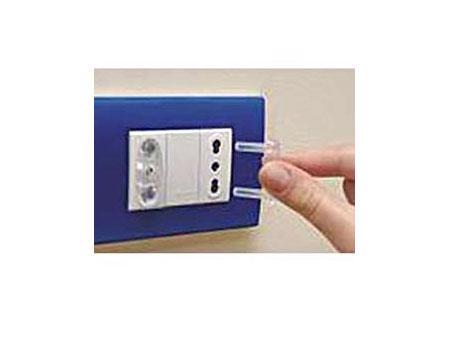 Záslepky které zamezují dětem strkání prstů nebo předmětů do zásuvky. Lze je vyjmout pouze pomocí přiloženého klíčku