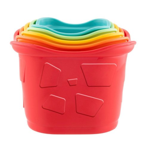 Verze klasické pohárkové stohovací hry 2v1. Třídění tvarů a skládání věže z materiálu vyrobeného z recyklovaného plastu.