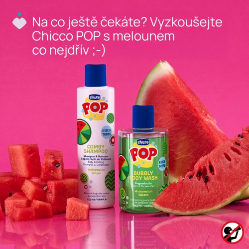 Jemná péče o vlasy se svěží melounovou vůní šamponu a kondicionéru Chicco POP Comby Watermelon, která usnadňuje rozčesávání a zanechává vlasy hebké a voňavé. Ideální řešení pro děti a teenagery, které promění koupání v zábavný rituál bez zbytečných starostí.