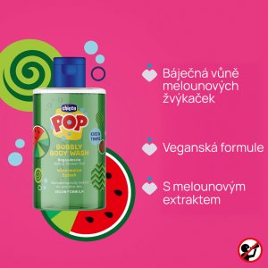 Proměňte každodenní sprchování v hravou a voňavou zážitkovou chvíli s Chicco POP sprchovým gelem Watermelon splash.