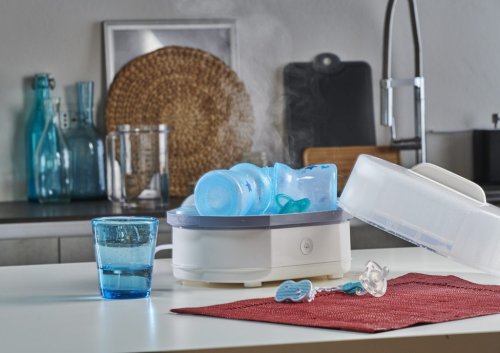 Efektivní sterilizace horkou párou – bez chemikálií S elektrickým parním sterilizátorem budete mít sterilizované láhve připravené k použití vždy po ruce. Sterilizátor pracuje jen s horkou párou a zcela bez chemických přísad.