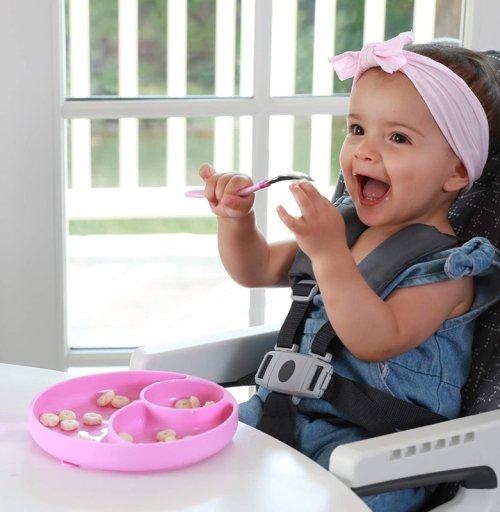 Silikonový talíř z evoluční řady Chicco Take Eat Easy určený k dosažení samostatnosti při jedení pomáhá dítěti poznávat nové chutě. Tři rozdělené části zabraňují, aby se různá jídla dotýkala. Tak dítěti představíme tři různé chutě.