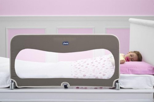 Zábrana na postel s kovovou konstrukcí a potahovou látkou zabrání pádu dítěte z postele po dobu spánku.