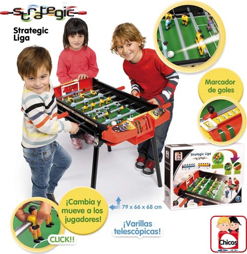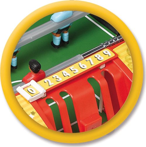 Fotbálek pro nejmenší k hraní jejich prvních utkání. Díky vyměnitelným hráčům si můžete vytvořit vlastní strategii sestav. Každý tým má 11 fotbalistů, umístěných na čtyřech teleskopických tyčích pomocí kterých je hráč ovládá. Postavy fotbalistů jsou z odolného plastu. Tvarované rukojeti ovládacích tyčí mají protiskluzovou úpravu. Za každou brankou je počítadlo vstřelených gólů. Rozměry: 79 x 66 x 68 cm Poznámka: Dodáváno v rozloženém stavu v kartonové krabici.