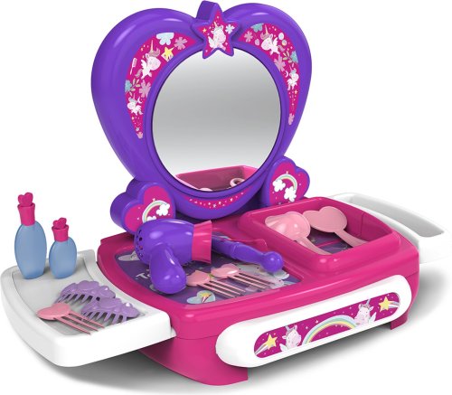 součástí je velké zrcadlo, ve kterém uvidíte každý detail obsahuje 12 doplňků: fén, hřeben, lahvičky na parfémy, sponky do vlasů a spoustu dalších..