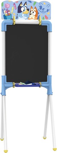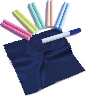 jedna strana je bílá pro psaní stíratelným fixem a druhá černá pro klasické křídy balení obsahuje krabičku s 10 křídami, 1 vymazatelnou černou fixu a mazací hadřík polička pod tabulí slouží jako odkládací plocha pro kreslící pomůcky a zároveň zachycuje odpadávající částečky křídy při kreslení rozměry tabule po složení: 37 x 32,5 x 85 cm