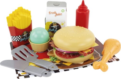 Plastový kufřík pro grilovací fanoušky je plný nezbytných potřeb a pomůcek pro přípravu hamburgerů. Sada obsahuje: 15 ks ( hranolky kuřecí stehno, kečup a další). Hry na profese nikdy neomrzí a navíc v dítěti podporují starostlivost a péči o ostatní.
