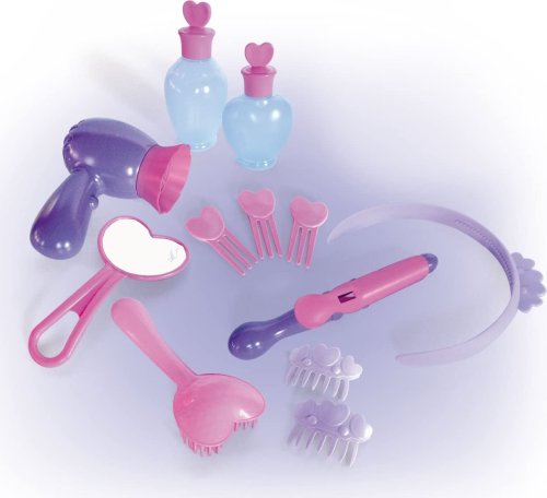 toaletní stolek, stolička, 12 ks doplňků (flakonky, fén, čelenku, sponky, aj.)