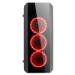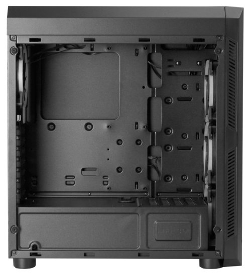 Stylová skříň formátu Middle Tower nabízí dvě 2,5" a dvě 3,5" interní pozice. Pro připojení USB médií jsou na horním panelu k dispozici dva USB 3.0 porty a jeden USB 2.0 port. K dispozici je také sluchátkový výstup a vstup pro mikrofon. Skříň je osazena jedním zadním a třemi předními 120 mm podsvícenými ventilátory, které spolu s průhlednou levou bočnicí a čelním panelem zajišťují vytříbený design. Skříň je dodávána bez zdroje.