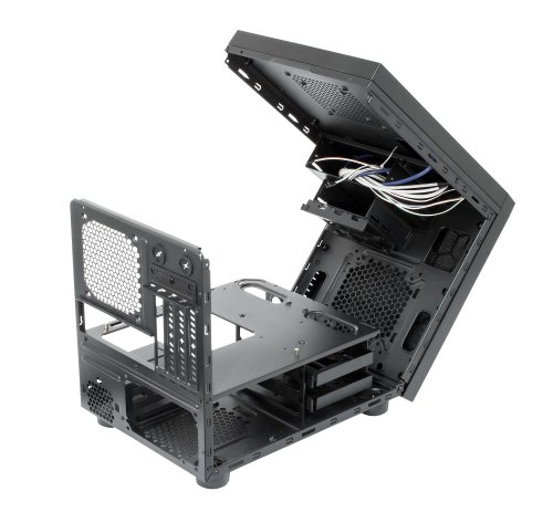 Černá počítačová skříň s moderním designem podporující základní desky typu Micro ATX. Na čelní straně se nachází dva USB 3.0 a jeden USB 2.0 port, audio vstup a výstup. Dále je zde k dispozici externí 5,25" pozice pro CD/DVD mechaniku a jedna 3,5" pozice. Skříň je možno osadit dvěma ventilátory, a sice jedním 120 mm na čelní straně a jedním 80 mm nebo 120 mm na zadní straně. Skříň je dodávána bez zdroje.