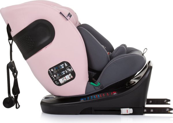 intuitivní a pohodlná instalace pomocí systému ISOFIX = rychlý způsob instalace dětské autosedačky - systém Isofix snižuje síly působící na dítě v případě náhlého zbrždění vozidla instalace po i proti směru jízdy (autosedačku lze používat proti směru jízdy pro děti s výškou 40-105 cm, věk 0-4 roky, vážící méně než 18kg) 360° otočení na plastové základně 5ti bodové bezpečnostní pásy s ochranným polstrováním, délkově nastavitelné nastavitelné opěradlo do 5 úrovní nastavení výšky opěrky hlavy vynikající ochrana proti bočnímu nárazu polstrování pro podporu hlavičky a těla dítěte přídavný 3D polštář pro snížení tlaku na pas a záda dítěte příjemný potah - lze sejmout a vyprat využití autosedačky pro menší i větší děti