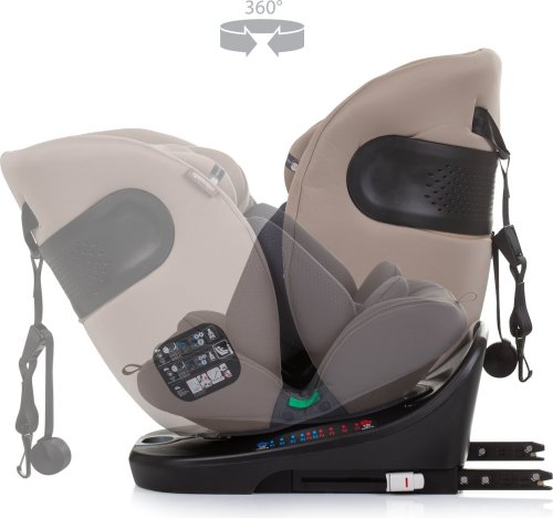 intuitivní a pohodlná instalace pomocí systému ISOFIX = rychlý způsob instalace dětské autosedačky - systém Isofix snižuje síly působící na dítě v případě náhlého zbrždění vozidla instalace po i proti směru jízdy (autosedačku lze používat proti směru jízdy pro děti s výškou 40-105 cm, věk 0-4 roky, vážící méně než 18kg) 360° otočení na plastové základně 5ti bodové bezpečnostní pásy s ochranným polstrováním, délkově nastavitelné nastavitelné opěradlo do 5 úrovní nastavení výšky opěrky hlavy vynikající ochrana proti bočnímu nárazu polstrování pro podporu hlavičky a těla dítěte přídavný 3D polštář pro snížení tlaku na pas a záda dítěte příjemný potah - lze sejmout a vyprat využití autosedačky pro menší i větší děti