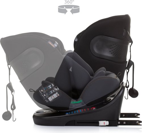 intuitivní a pohodlná instalace pomocí systému ISOFIX = rychlý způsob instalace dětské autosedačky - systém Isofix snižuje síly působící na dítě v případě náhlého zbrždění vozidla instalace po i proti směru jízdy (autosedačku lze používat proti směru jízdy pro děti s výškou 40-105 cm, věk 0-4 roky, vážící méně než 18kg) 360° otočení na plastové základně 5ti bodové bezpečnostní pásy s ochranným polstrováním, délkově nastavitelné nastavitelné opěradlo do 5 úrovní nastavení výšky opěrky hlavy vynikající ochrana proti bočnímu nárazu polstrování pro podporu hlavičky a těla dítěte přídavný 3D polštář pro snížení tlaku na pas a záda dítěte příjemný potah - lze sejmout a vyprat využití autosedačky pro menší i větší děti