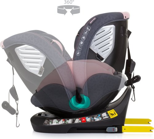 intuitivní a pohodlná instalace pomocí systému ISOFIX = rychlý způsob instalace dětské autosedačky - systém Isofix snižuje síly působící na dítě v případě náhlého zbrždění vozidla, instalace po i proti směru jízdy (autosedačku lze používat proti směru jízdy pro děti s výškou 40-105 cm, věk 0-4 roky, vážící méně než 18kg), 360° otočení na plastové základně, 5ti bodové bezpečnostní pásy s ochranným polstrováním, délkově nastavitelné, nastavitelné opěradlo do 5 poloh, nastavení výšky opěrky hlavy, vynikající ochrana proti bočnímu nárazu, polstrování pro podporu hlavičky a těla dítěte, přídavný 3D polštář pro snížení tlaku na pas a záda dítěte, příjemný potah - lze sejmout a vyprat, využití autosedačky pro menší i větší děti.