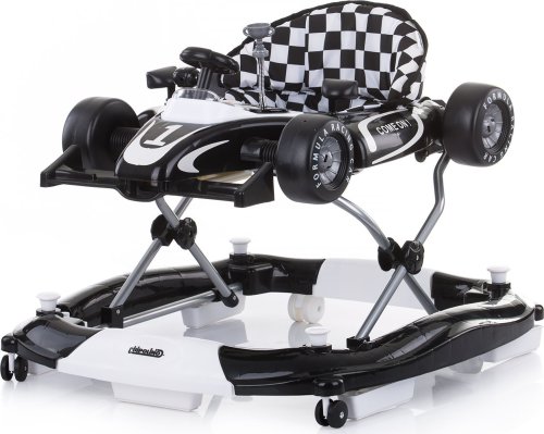 4v1 = chodítko (bez textilní základny), houpátko , hrací centrum (dítě šlape na textilní základnu a hraje si) a postrkovací hračka pro první krůčky široká základna pro lepší stabilitu 3 výškové polohy sedátka, které odpovídají výšce dítěte 6 zarážek zabraňujících převrácení nebo pádu ze schodů 4 kolečka - přední kolečka se otáčejí o 360 stupňů hrací pultík ve tvaru formule lze odpojit a přeměnit na autíčko na tlačení snadno se skládá a skladuje snadná montáž vyrobeno z kvalitních a bezpečných plastů