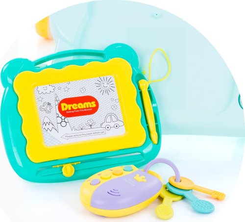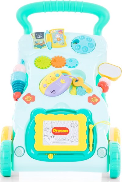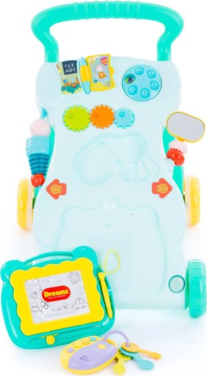 Pro děti od 6 měsíců, které umí samostatně chodit. Barevné, zajímavé a interaktivní - stimuluje sluch, zrak, zlepšuje fyzickou koordinaci a rovnováhu dítěte. Různé druhy her pro delší udržení pozornosti batolat. Kreslící tabulka s perem, zrcátko, ozubená kola, aj. Přehrává světla, melodie a zvuky. Klíče s ovladačem a kreslicí tabulka hračky jsou odnímatelné a lze je používat samostatně. Pohodlné, lehké a snadno se tlačí. Zadní kola s protiskluzovou silikonovou podložkou. Rychlost jízdy lze nastavit na kolech pomocí šroubováku. Baleno v barevné dárkové krabici. Pro Chytrý dálkový ovladač je třeba 2 ks 1,5V baterií ААA (nejsou součástí balení).