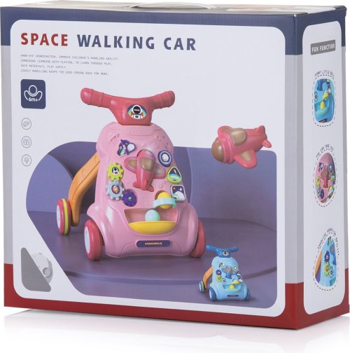 tlačením hračky si batole bude jistější při rozvoji chůze, rovnováhy a koordinace, jasné barvy a zvuky různých her podněcují kreativitu dítěte, rozvíjejí sluch a zrak, hudební hračka pro děti od 6 měsíců, chodítko ke tlačení pro děti, které umí samostatně chodit, děti, které neumějí samy chodit, by výrobek neměly používat, letadlo můžete oddělit a používat jej jako samostatnou hračku, různé druhy her pro delší udržení pozornosti batolat, nádržka na vodu - pro zvýšení hmotnosti hračky, melodie, světla a zvuky, pohodlné, lehké a snadno se tlačí, pro provoz výrobku jsou třeba 2 ks baterií AA,1,5V (nejsou součástí balení).
