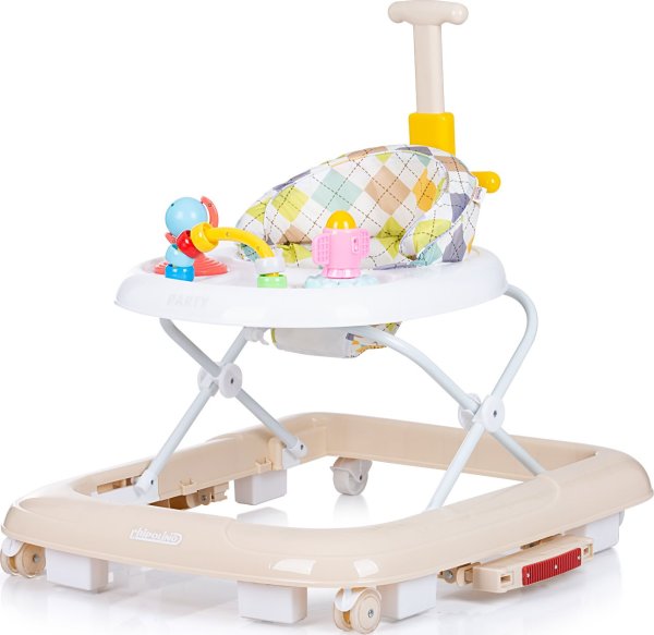 Multifunkční chodítko je vhodné pro děti s hmotností do 12 kg, které ještě neumí samy chodit, ale umí samostatně sedět. Chodítko 4v1 Party podporuje pokusy dítěte o první krůčky a zlepšuje jeho rovnováhu a koordinaci. Barvy a zvuky na pultíku podněcují kreativitu dítěte a rozvíjejí jeho sluchové a zrakové schopnosti.