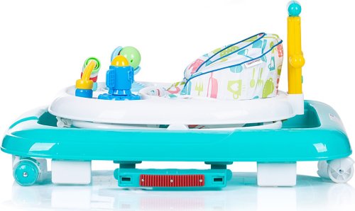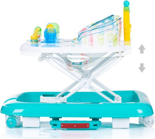 4v1 = chodítko, houpátko, postrkovací hračka, možnost tlačení dospělou osobou široká základna pro lepší stabilitu 3 výškové polohy sedátka, které odpovídají výšce dítěte 6 zarážek zabraňujících převrácení nebo pádu ze schodů 4ks koleček - přední kolečka se otáčejí o 360 stupňů pultík s hracím panelem snadno se skládá a skladuje snadná montáž
