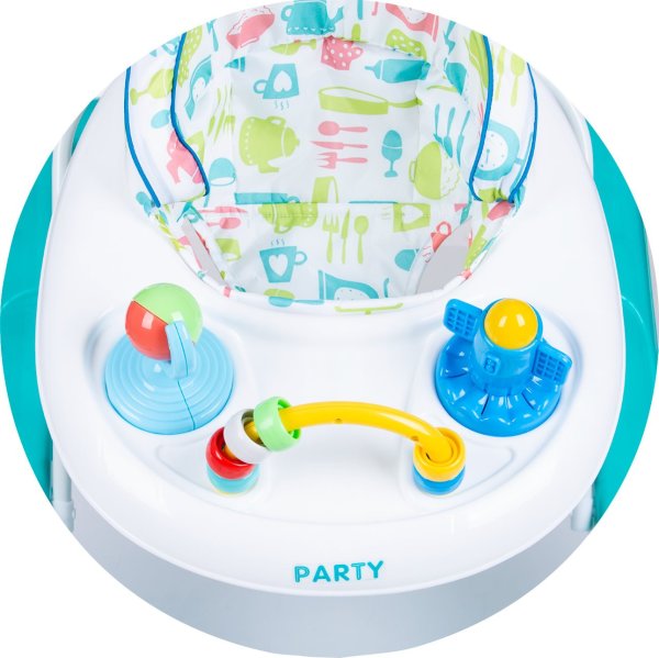 Multifunkční chodítko je vhodné pro děti s hmotností do 12 kg, které ještě neumí samy chodit, ale umí samostatně sedět. Chodítko 4v1 Party  podporuje pokusy dítěte o první krůčky a zlepšuje jeho rovnováhu a koordinaci. Barvy a zvuky na pultíku podněcují kreativitu dítěte a rozvíjejí jeho sluchové a zrakové schopnosti.