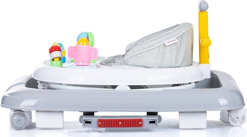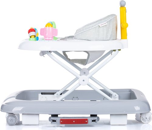 4v1 = chodítko, houpátko, postrkovací hračka, možnost tlačení dospělou osobou široká základna pro lepší stabilitu 3 výškové polohy sedátka, které odpovídají výšce dítěte 6 zarážek zabraňujících převrácení nebo pádu ze schodů 4ks koleček - přední kolečka se otáčejí o 360 stupňů pultík s hracím panelem snadno se skládá a skladuje snadná montáž