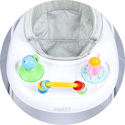 Multifunkční chodítko je vhodné pro děti s hmotností do 12 kg, které ještě neumí samy chodit, ale umí samostatně sedět. Chodítko 4v1 Party podporuje pokusy dítěte o první krůčky a zlepšuje jeho rovnováhu a koordinaci. Barvy a zvuky na pultíku podněcují kreativitu dítěte a rozvíjejí jeho sluchové a zrakové schopnosti.