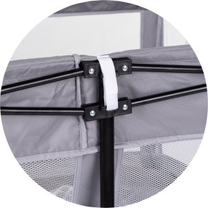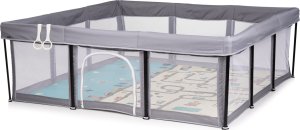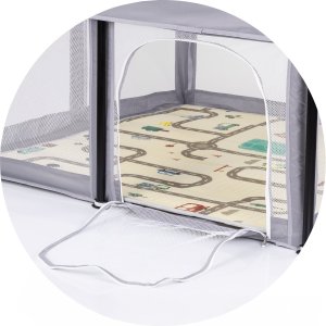 velká hrací plocha umožňuje dětem volně lézt, hrát si a objevovat okolí, boční dvířka se zipem umožňují dítěti samostatně vstoupit i vystoupit, prodyšné síťované panely zajišťují optimální cirkulaci vzduchu a přehled o dítěti za všech okolností, zesílený rám s měkkým polstrováním a zaoblenými rohy, lehká, snadno sestavitelná a jednoduchá na údržbu, součástí balení jsou 2 ks držacích kroužků, které dítěti pomáhají přitáhnout se a postavit se.