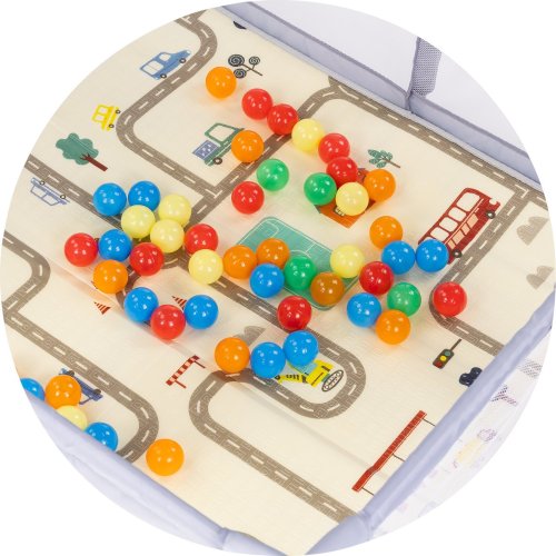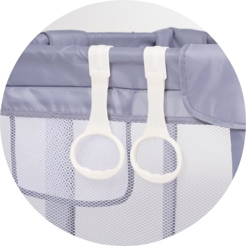 součástí jsou pevná plastová dvířka s motivem, zesílená konstrukce a prodyšné síťované panely poskytují skvělou stabilitu, viditelnost i pohodlí, lehká, snadno sestavitelná a jednoduchá na údržbu, součástí balení jsou 2 ks držacích kroužků, které dítěti pomáhají přitáhnout se a postavit se.
