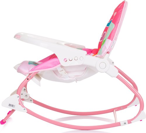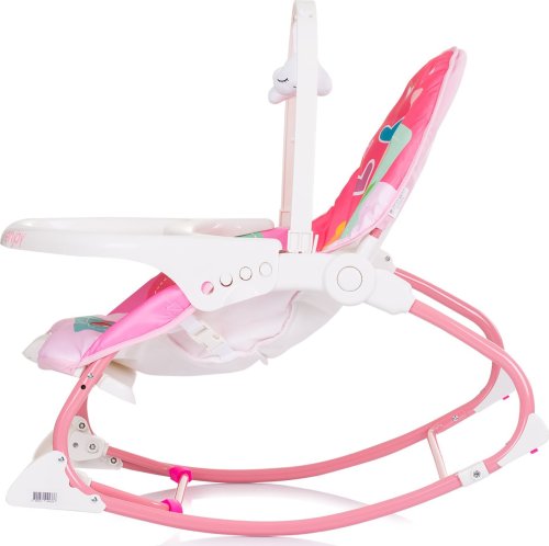 vhodné pro kojence a malé děti s hmotností do 9 kg lze použít jako židli pro děti, které mohou samostatně sedět, s maximální hmotností 18 kg dvě polohy opěradla příjemné melodie v kombinaci s uklidňujícími vibracemi, hrazdička se zavěšenými hračkami odnímatelný plastový pult 3-bodové bezpečnostní pásy houpání lze jednoduše zablokovat