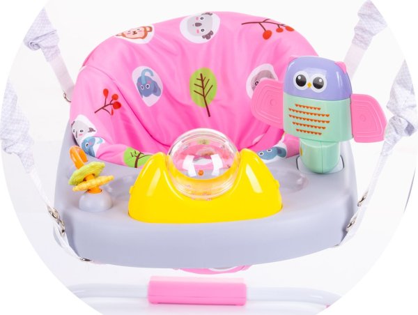 Výrobek je určen pro děti, které umí samy držet hlavičku (přibližně od 6 měsíců), s hmotností do 11 kg a výškou do 76 cm. Multifunkční hračka - centrum hudebních aktivit a houpátko. Barevný pultík s hračkami a hudebním modulem, který přehrává různě dlouhé melodie a svítí. Výšku pultíku lze nastavit do 3 poloh. Stimuluje sluch, zrak, zlepšuje koordinaci pohybů a rovnováhu dítěte. Textilní části lze prát ručně při max 30°C, ostatní části čistěte vlhkým hadříkem. K provozu výrobku je třeba 2 ks 1,5V baterie AA,LR6 (nejsou součástí výrobku).