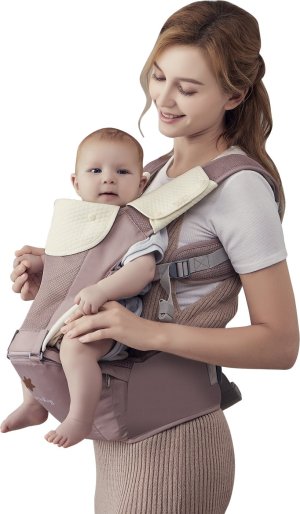 nastavitelná délka pásů podle věku dítěte široké, měkké a polstrované ramenní a bederní popruchy odnímatelné podbradníky na ramenních popruzích, lze odejmout a vyprat široký polstrovaný bederní pás boční kapsa na zip sedák na bocích větrací síťování 3 polohy dítěte v režimu sedačky na bocích: