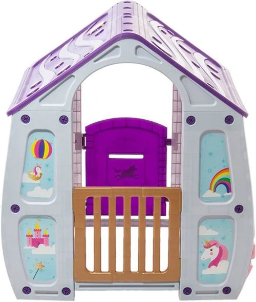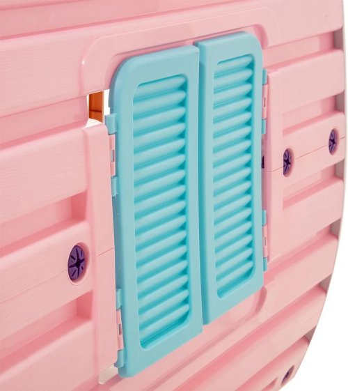 vhodný pro vnitřní i venkovní použití, domeček s funkčními dveřmi, okny a okenicemi, otvor pro poštu na dveřích, aby děti mohly přijímat vzkazy od rodiny a přátel, lehká konstrukce - snadno se přenáší, snadná montáž bez nutnosti použití nářadí, odolný vůči UV záření, rozměry (ve složeném stavu): 109 x 90 x 102 cm.