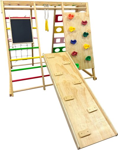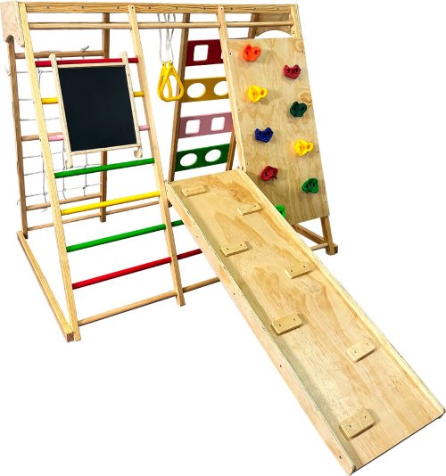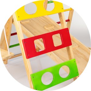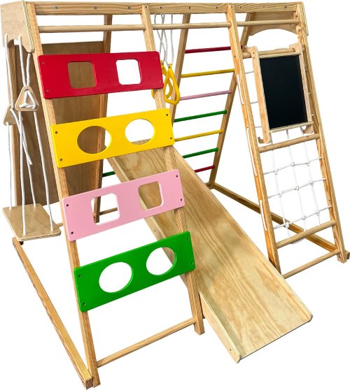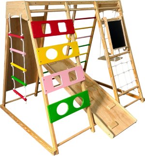 Proměňte každé místo v zábavný a bezpečný koutek pro hraní s multifunkční dřevěnou prolézačkou.