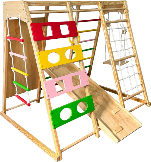 Proměňte každé místo v zábavný a bezpečný koutek pro hraní s multifunkční dřevěnou prolézačkou.