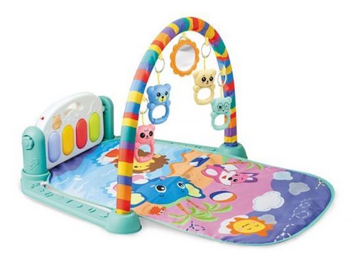 Jemná antialergenní látka s rozdílnými povrchy, součástí je závěsný oblouk s různými hračkami, hračky je možné odepnout a očistit, piánko se světly stimuluje smysly dítěte, látkové části lze prát ručně při 30°C.