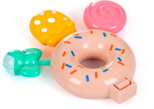 obsahuje 34ks příslušenství - stojan s donuty, mince a bankovky a další, interaktivní hračka se zvuky a světly, pro provoz jsou třeba baterie 3ks AA,1,5V (nejsou součástí balení) , rozměry výrobku (ve složeném stavu): 27 x 29,5 x 14 cm.