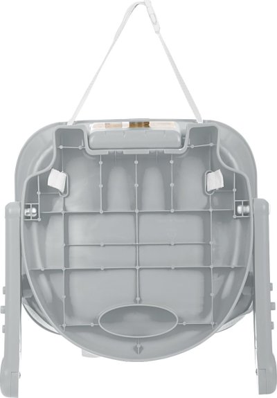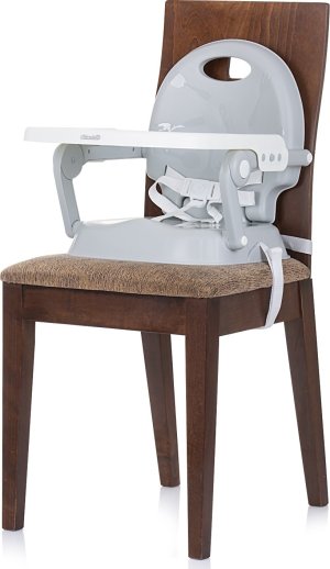 pro samostatně sedící děti široký a pohodlný sedák 30-35 cm bezpečnostní pásy opěradlo lze sklopit a složit opěrka nohou posouvatelný podnos dopředu a dozadu do 3 poloh snadné čištění protiskluzové krytky nohou madlo v zadní části opěradla pro snadnější přenášení podsedák lze použít jako nástavec na židli pro dospělé - upevnění pomocí pásů