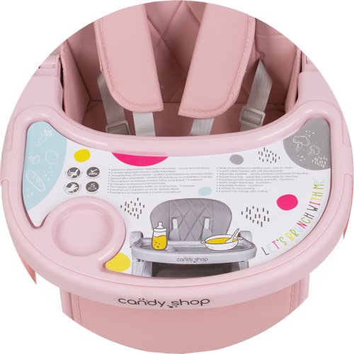 Jídelní židlička Candy Shop je vhodná pro samostatně sedící děti s hmotností do 15 kg. Vlastnosti: