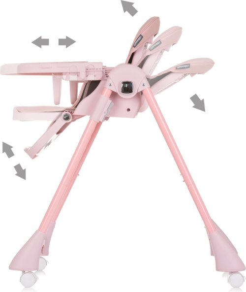 nastavitelná opěrka zad do 3 poloh, výškově nastavitelné sedadlo do 8 poloh, nastavitelná opěrka nohou do 3 poloh, široký a pohodlný sedák, 5bodové bezpečnostní pásy s měkkými ramenními polštářky, dvojitý podnos na potraviny - horní podnos je odnímatelný pro snadné čištění, základní podnos na potraviny je vybaven ochrannou T-tyčí, posouvatelný podnos dopředu a dozadu do 3 poloh, 4 kolečka pro snadné přemisťování, kompaktní pro skladování, rozměry: 83 x 49 x 96 cm.