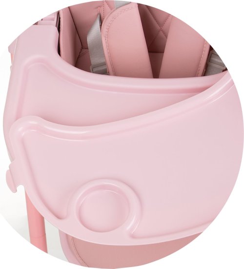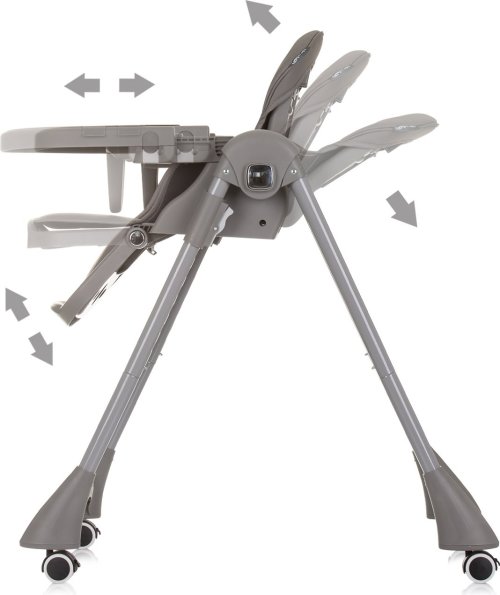 nastavitelná opěrka zad do 3 poloh, výškově nastavitelné sedadlo do 8 poloh, nastavitelná opěrka nohou do 3 poloh, široký a pohodlný sedák, 5bodové bezpečnostní pásy s měkkými ramenními polštářky, dvojitý podnos na potraviny - horní podnos je odnímatelný pro snadné čištění, základní podnos na potraviny je vybaven ochrannou T-tyčí, posouvatelný podnos dopředu a dozadu do 3 poloh, 4 kolečka pro snadné přemisťování, kompaktní pro skladování, rozměry: 83 x 49 x 96 cm.