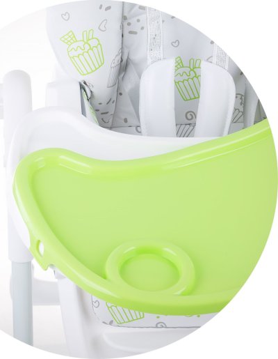 pro samostatně sedící děti 6-úrovňové nastavení výšky sedadla široký a pohodlný sedák 5-bodové bezpečnostní pásy s ochranným polstrováním 4-úrovňové nastavení opěradla nastavitelná opěrka nohou - 3 úrovně dvoudílný posuvný podnos s horním odmímatelným vrchním dílem (vybaven ochrannou T-tyčí) nastavitelný do 3 úrovní snadné čištění úložný koš na příslušenství pod sedadlem kolečka pro snadné přemisťování kompaktní velikost po složení a snadné skladování