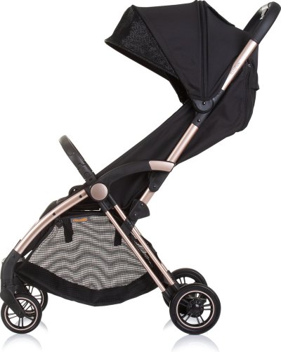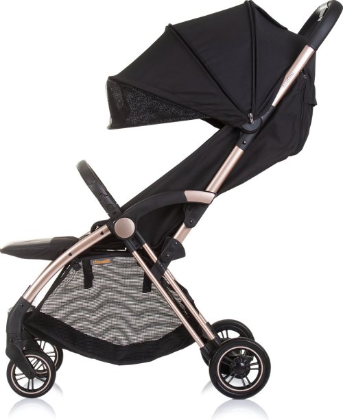 stabilní moderní rám, 3D automatické skládání jednou rukou, 3 polohy sklonu zádové opěrky nastavitelné mechanismem, odnímatelný přední madlo, 5bodový bezpečnostní pás s měkkými ramenními vycpávkami, velká stříška s ventilační částí a kapsou na doplňky, nastavitelná opěrka nohou, pohodlná rukojeť s potahem z eko kůže, velký úložný koš všechna kola jsou rychle odnímatelná a s odpružením, zadní kola s propojenou brzdou