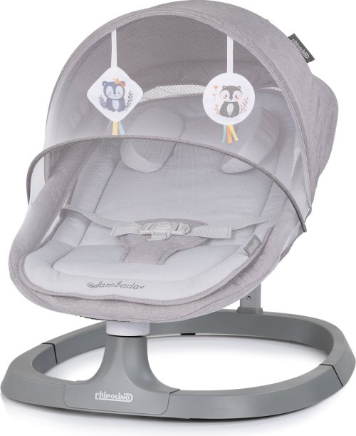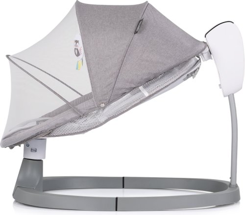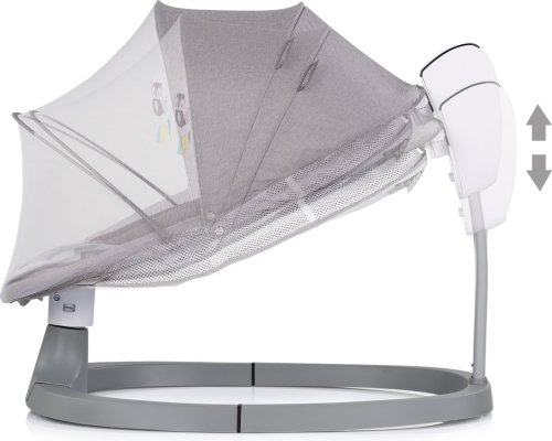 3 různé typy houpání s různými úrovněmi rychlosti, časovač na 15, 30 a 45 minut, různé melodie, poloha vleže a vsedě – vhodné pro spánek, krmení i hraní s dítětem, nastavitelné opěradlo do 2 poloh, rám s LED dotykovým displejem, stříška s měkkými plyšovými hračkami, měkká opěrka hlavy, bezpečnostní pás, moskytiéra, dálkové ovládání, napájení kolébky pomocí AC,DC adaptéru – AC: 100–240 V, 2.0 A (je součástí balení), rozměry výrobku: 80 x 55 x 70 cm.