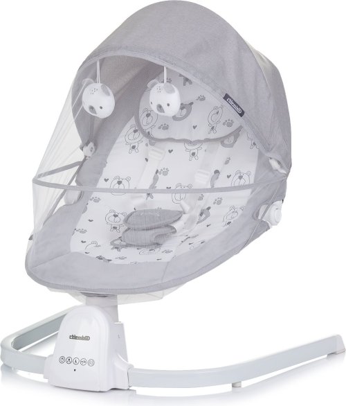 sedátko lze nastavit do 3 poloh, měkký polštářek pro oporu hlavičky dítěte, bezpečnostní pás, 5 rychlostí houpání, časovač na 8, 15 a 30 minut, různé melodie, stříška s měkkými plyšovými hračkami pro zábavu dítěte, moskytiéra, polohy vleže a vsedě – vhodné ke spánku, krmení a hraní s dítětem, funkce lze ovládat pomocí dálkového ovladače, napájení kolébky pomocí AC,DC adaptéru – AC: 100–240 V ~ 50,60 Hz a DC: 5–6 V 1.0A (je součástí balení), možnost napájení bateriemi: 4 ks typu AA,1,5 V (LR6) (nejsou součástí balení), rozměry výrobku: 62 x 70 x 54 cm.