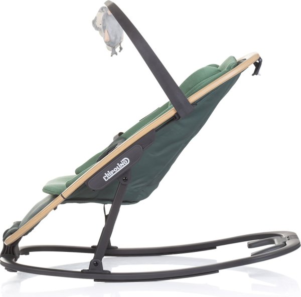 vhodné pro miminka a malé děti, které ještě neumí samostatně sedět, nastavitelná opěrka zad, hrazdička se zavěšenými hračkami, speciální měkká látka pro maximální pohodlí, přídavná měkká opěrka hlavy pro miminko, 3-bodový bezpečnostní pás, houpací funkce, snadné a kompaktní složení, rozměry výrobku: 43 x 68 x 67 cm.
