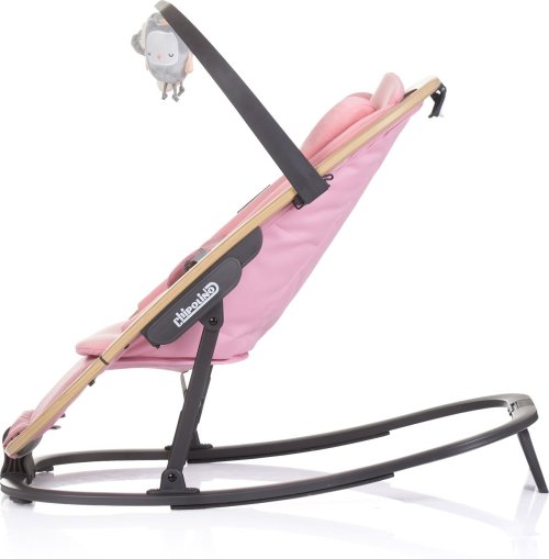 vhodné pro miminka a malé děti, které ještě neumí samostatně sedět, nastavitelná opěrka zad, hrazdička se zavěšenými hračkami, speciální měkká látka pro maximální pohodlí, přídavná měkká opěrka hlavy pro miminko, 3-bodový bezpečnostní pás, houpací funkce, snadné a kompaktní složení, rozměry výrobku: 43 x 68 x 67 cm.