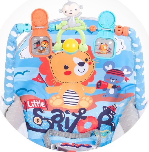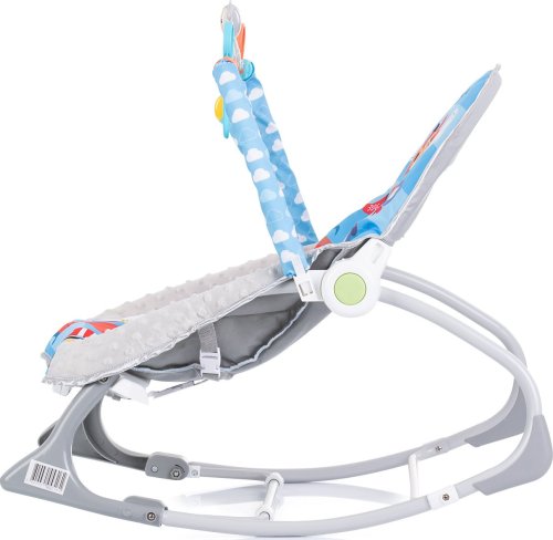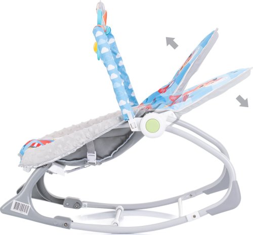 2v1 = houpátko a židlička, houpátko pro miminka a děti vě věku 0-6 měsíců vážící max 9 kg, které neumí samostatně sedět, židlička pro samostatně sedící děti vážící max 18 kg ve věku do 36 měsíců, nastavitelné opěradlo do 2 poloh, oblouk se závěsnými hračkami, houpací funkce, hudební box s melodiemi a vibracemi, 3-bodové bezpečnostní pásy, rozvíjí představivost a motoriku.