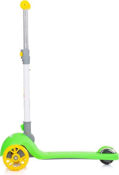 vhodné od 3 let, nosnost 50 kg lehký hliníkový rám výškově nastavitelná řídítka do 3 poloh gumové protiskluzové rukojeti průměr kol: přední 12 cm, zadní 8 cm přední i zadní kola s barevnými LED světly nášlapná brzda na zadním kole široké protiskluzové stupátko řídítka lze složit pro kompaktní skladování