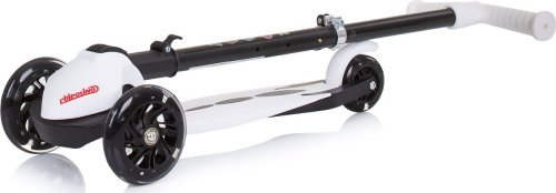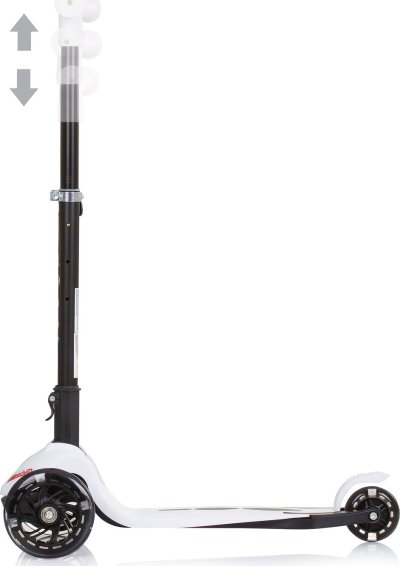 vhodné od 3 let, nosnost 50 kg lehký hliníkový rám výškově nastavitelná řídítka do 3 poloh gumové protiskluzové rukojeti průměr předních koleček: 120 mm přední i zadní kola s barevnými LED světly nášlapná brzda na zadním kole široké protiskluzové stupátko řídítka lze složit pro kompaktní skladování