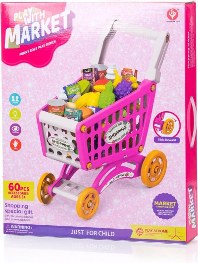 Balení obsahuje nákupní košík a makety potravin. Rozměry vozíku: 24,5 x 40 x 44.